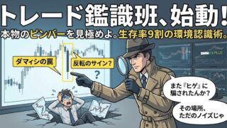 「きれいなピンバー」はただの罠だ。教科書通りにエントリーして即死する理由を、300万溶かした鑑識班長コリンが徹底解剖。勝率9割の「本物のピンバー」が見つかる場所(50SMA・水平線)と、ダマシを回避するマルチタイムフレーム捜査術を公開。【シーズン4開幕】
