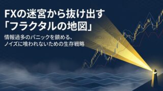 FX5分足で勝てない原因は「現在地」の迷子だから。2026年のAI相場でダマシを回避する「フラクタル構造」の地図の読み方を解説。スマホ専業の限界を突破し、日足と1時間足の確定を待つ「コリン流MTF分析」で勝率を劇的に上げる生存戦略。