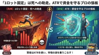 「1ロット固定」は思考停止の自殺行為だ。300万溶かしたコリンが、相場の体温計「ATR」を使ってリスクを完全制御するプロの資金管理術を伝授。暴落相場でも無傷で生き残るための「死なない計算式」をドリル形式で叩き込む。