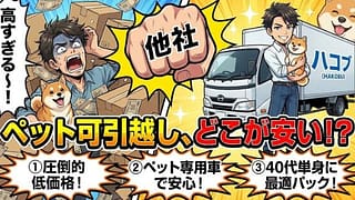 愛犬との引越し記録 ペット可の引越し業者はどこが安い?40代の単身引越しに「ハコブ」を推す3つのワケ ペット可の格安引越し業者なら「ハコブ」一択?40代単身の体験談。犬連れだと見積もりが高くなる理由と、それを解決する裏技を紹介します。賢く節約して、愛犬との新生活を楽しみましょう。 2025.12.14 愛犬との引越し記録