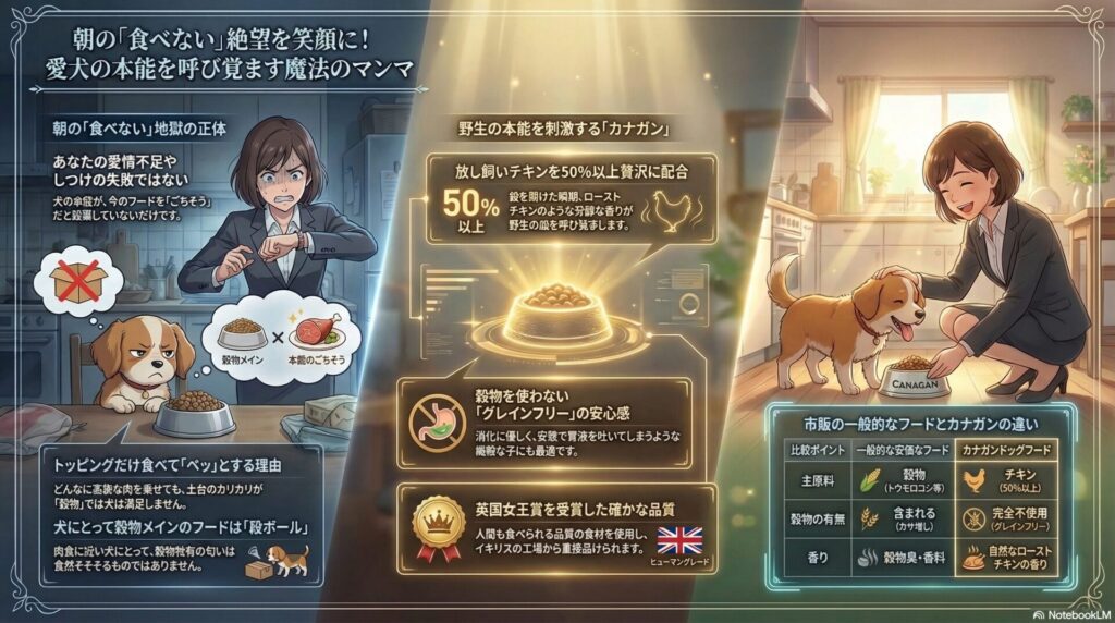 👉【朝のイライラ卒業!】愛犬が野生の目をして爆食いする「お肉たっぷりカナガン」で、穏やかなコーヒータイムを取り戻すんじゃ!