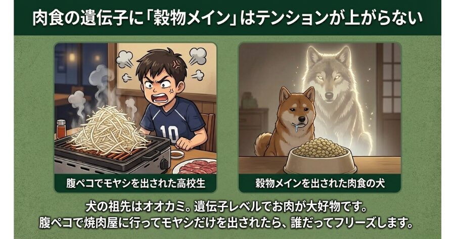犬は「肉食」。穀物メインはテンション上がらんのよ