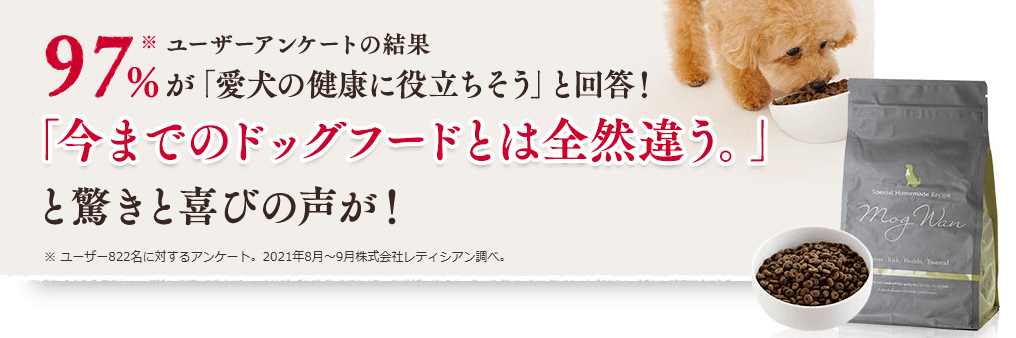 モグワンは、情報公開を重視する、賢い飼い主さんのニーズに、これ以上ないほどしっかりと応えるドッグフードです。「安心して愛犬に与えられるフードを選びたい」と心から願っている方は、ぜひ一度、モグワンを検討してみてはいかがでしょうか?