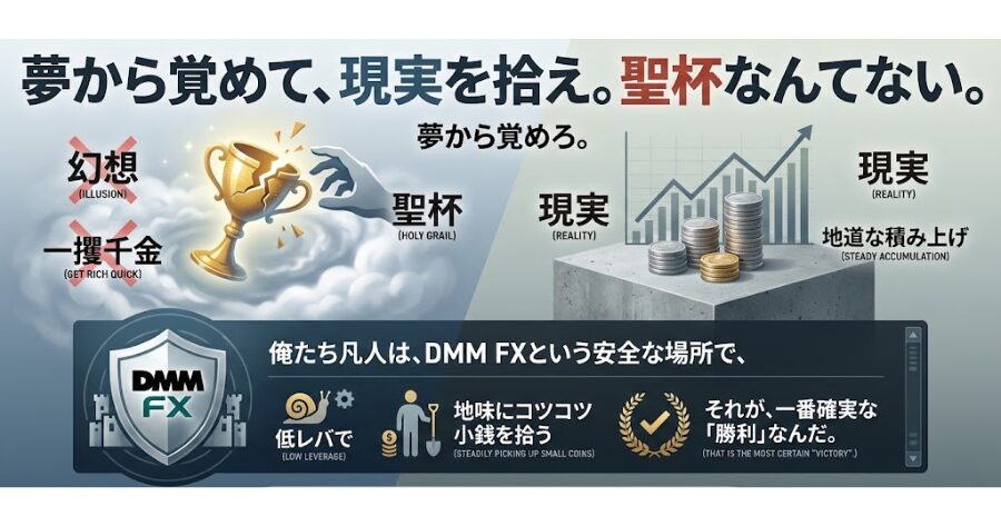 俺たち凡人は、DMM FXという安全な場所で、低レバで、地味にコツコツ小銭を拾う。 それが、一番確実な「勝利」なんだ。