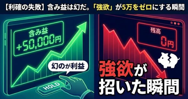 この「損失回避(Loss Aversion)」の本能が働き、「損をしたくない(5万に戻したい)」という強欲を生む。 これが「利確できない病」の正体だ。